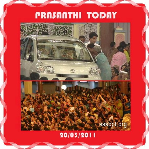 Tat Опубликовано 25 марта, 2012 Опубликовано 25 марта, 2012 Последний даршан… 25 марта 2011 Божественная машина ехала по ковру обожания, который расстилало в Саи Кульвант холле в тот вечер каждое сердце всех собравшихся, желавших увидеть Бога. Все вытягивали шеи, чтобы увидеть любимую форму. Благоговение, восторг и глубокое почтение истекали из каждого, окутывая всегда любящего живого Бога. Только при воспоминании ощущается, что эти строчки отражали умоляющую просьбу: «Тум Ко Декха То Ех Кхаял Аая Зиндаги Дхуп, Тум Гхана Саая… Хум Ней Кья Кхоя, Хум Ней Кья Паая…( Tum Ko Dekha Toh Yeh Khayal Aaya Zindagi Dhoop, Tum Ghana Saaya…Hum Ney Kya Khoya, Hum Ney Kya Paaya…) О! Господь, мысли, проносящиеся в уме при виде Твоей Любимой Формы, заставляют меня понять, что Ты – та живительная, успокаивающая и освежающая прохлада тени, даже если жизнь выставляет под палящие лучи солнца… Однако, когда Тебя больше не видно, разве можем мы догадаться/признать, что потеряли, или понять/определить, что получили или обрели…?» Время, последовавшее за этим, раскрывающее Его Божественный план и неизбежно вытекающие из него события, было известно только Возлюбленному…, неожиданный шок, невыносимые страдания и пронзительная боль ощущались, когда Он решил покинуть эту Дорогую сердцу Форму. Эти страдания можно было преодолеть только ливнем любви, истекающим водопадом из Его Имени. Когда Бхагаван давал этот самый любящий, длительный, окончательный и значимый даршан, Он дал всем понять – вы никогда не будете одиноки, вы всегда будете для Бога поистине Его собственными. Присоединяйтесь к Прашанти в воспоминаниях этого последнего публичного даршана Бесформенного Всевышнего. Надпись на фото: Последний даршан нашего Возлюбленного Бхагавана, как о нём сообщалось в репортаже из Прашанти Нилаям 25 марта 2011. В этот вечер Прашанти записал прекрасную историю даршана, когда Бхагаван появился в 19:15 и совершил полный круг даршана. Завершив первый круг, Бхагаван направился на женскую сторону и совершил дополнительный круг даршана. Дети начальной школы провели великолепное время с Бхагаваном, поскольку Он предпочёл остановиться около этого блока в конце первого круга. Малыши буквально столпились вокруг Его машины, держа в своих руках приветственные открытки. Каждый из них один за другим получил благословение Бхагавана, прежде чем Его машина двинулась на женскую сторону даровать дополнительный круг даршана. Во время круга даршана особое внимание Бхагавана получила также группа из институтов Алике, Мудденахали (Alike, Muddenahalli). Поднявшись на сцену в 19:30, Бхагаван сидел следующие полчаса, и бхаджаны стали более интенсивными. Бхагаван присоединился к бхаджанам, время от времени отбивая ритм пальцем, и сессия для августейшей аудитории в этот вечер превратилась в восхитительное удовольствие пения бхаджанов. Спустя две минуты после 20:00 Бхагаван попросил выполнить Мангала арати. Когда арати подходило к концу, Бхагаван вошёл в настроение благословений, продолжительно благословляя аудиторию двумя руками жестом абхаяхаста. После арати Его благословляющая рука опять поднялась, благословляя аудиторию жестом абхаяхаста, после чего Бхагаван покинул сцену и в 20:05 удалился в Яджур мандир. О! Это был последний публичный даршан нашего Всевышнего Господа Бхагавана Шри Сатья Саи Бабы… Источник: http://www.theprasan...12/03/thus-far/