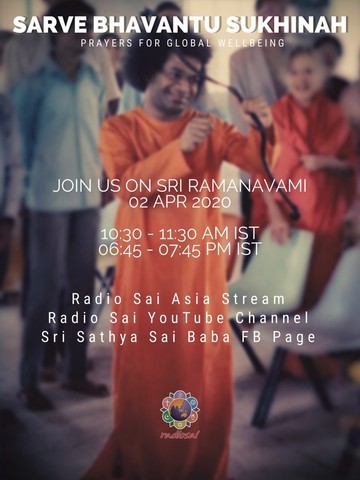 marianna Опубликовано 2 апреля, 2020 Автор Опубликовано 2 апреля, 2020 Счастливого всем праздника! подробнее можно ещё здесь почитать Шри Рама Навами, что Свами говорит о значении этого праздника Радио Саи всех ещё приглашает на всеобщую молитву о Всемирном Благополучии, утренняя уже прошла, но скоро будет вечерняя SARVE BHAVANTU SUKHINAH Молитвы о Всемирном Благополучии в День Рама Навами Слова по ссылке - https://media.radiosai.org/www/imagedownloads/Prayer-hanuman-chalisa-Aditya-Hrudayam.pdf всегда и marianna 1 1