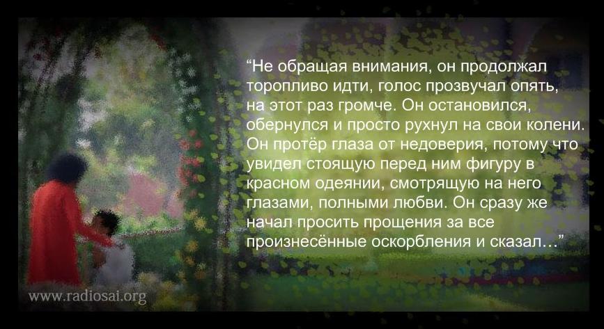 Tat Опубликовано 1 апреля, 2014 Автор Опубликовано 1 апреля, 2014 Душевное спокойствие благодаря отсутствию склонности осуждать – личный урок от Бхагавана Шри Сатья Саи Бабы Часть 2 Моя дерзновенная затея http://www.youtube.com/watch?v=GOCKJAWSI9o Это видео и всё описание, приведённое ниже, вызовет удивительные чувства, если вы прочли первую часть этого повествования. Если вы начали читать только с этого места, я вам настоятельно рекомендую прочесть первую часть, прежде чем продолжить читать то, что написано ниже. На этом видео запечатлена беседа, описанная в первой части этой статьи, эта беседа состоялась 25 сентября 2009 года. Повествование второй части начинается отсюда… В первую очередь я подошёл к церемониймейстеру проведения Дасары, чтобы узнать, кто дал ему имена ораторов. Мои поиски привели меня к вице-канцлеру университета. Возвращаясь в студию, я встретил уважаемого профессора Вишванатх Пандита. Когда я поприветствовал его, он скромно и искренне поприветствовал меня, сложив свои руки. Меня очень смутила скромность этого человека, который был одним из выдающихся экономистов Индии и ранее преподавал на факультете экономике в Дели. В действительности, правительство Индии постоянно приглашало его в группу советников по финансовому бюджету страны, и советы уважаемого профессора всегда оказывались полезными. Увидев его, я лишний раз убедился, что плодоносящее дерево со спелыми плодами всегда склоняется в смирении. Но сегодня самыми главными мыслями в моём уме были мысли о том, что Свами сказал вечером. Не предваряя свои слова никакими учтивыми речами, я прямо начал с главного. “Господин, все мы хотим услышать Свами во время Прашанти Видван Махасабха (выступление учёных ораторов), проводящегося по вечерам во время Дасары” “Да! Было бы замечательно, если бы Свами выступил” “Тогда почему вы не внесёте Его в список ораторов? Пожалуйста, сделайте это. Скажите Ему, что никто не будет выступать с речью, Он должен выступить”. Профессор смотрел на меня, не говоря ни слова. Я по глупости вдохновился и продолжил: “Разве это не преступление лишать Свами возможности выступить, если Он сам хочет этого?” На лице благородного профессора появился небольшой намёк на раздражение. Вскоре оно исчезло, и он спокойно сказал мне: “Вам лучше оставаться в своих границах. Вы не понимаете многих вещей…” Но я продолжал: “Но, господин, Свами хочет выступить. Тогда в чём проблема?” Он только похлопал меня по плечу и ушёл, покачивая своей головой. Я не смог понять, что он имел в виду. Но я был не из тех, кто легко отступают. Я решил обратиться к другим именитым людям, которым Свами даровал честь ужинать с Ним каждый вечер. Они, конечно же, наблюдали этот “договор о выступлении”, который состоялся этим вечером. Я пошёл к профессору Г. Венкатараману (ГВ, как мы его с любовью называем), директору Радио Саи. Только разговаривая с ним, я узнал причину, почему вице-канцлер сказал мне, что я не понимаю многих вещей. Господин ГВ рассказал мне, что вице-канцлер каждый день неоднократно просил Свами выступить с Божественной Речью. Однако Свами всегда просил у него имена предполагаемых ораторов. Однажды вице-канцлер смело сказал: “Свами, ораторов больше нет”. Свами спросил его, разве он не может найти одного оратора во всём университете. Свами огорчился, что Его скромные ожидания не оправды
