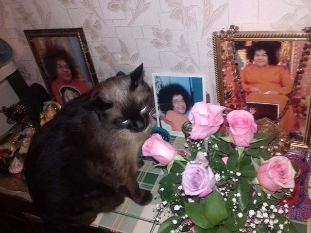 Purusha Опубликовано 6 сентября, 2019 Опубликовано 6 сентября, 2019 Удивительно, как некоторые животные чувствуют Свамино присутствие! Вот чему можно учиться у них... Одна преданная написала, что как только у её кошки проблемы, она бежит к портрету Свами! Эта киса и другие вместе с ней, пришли сегодня на страничку, чтобы порадовать нас Саи Рам всем мирам! mayachok 1