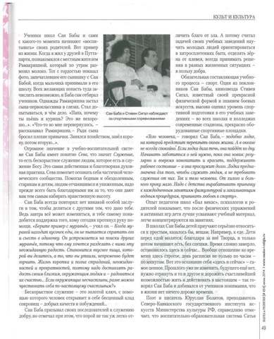 Purusha Опубликовано 16 июня, 2014 Опубликовано 16 июня, 2014 где-то на форуме была рубрика ПУБЛИКАЦИЙ О СВАМИ, но пока не нашла ее, поэтому положу ссылку о еще одной небольшой публикации в молодежном журнале СТЕНА за июнь 2014 о Свами здесь http://stena.at.ua/news/vyshel_2_3_2014_zhurnala_stena/2014-06-06-37 радует, что в разных источниках начались публикации о Свами Духовная основа образования (беседы Саи Бабы) Настоящий учитель не пересказывает, он даёт то, что исходит из сердца, обдуманное, проанализированное, пережитое… Он учит единству мысли, слова и действия. Хорошим образованием может считаться лишь то образование, которое учит способам достижения мира и покоя, которое разрушает узость мышления и провозглашает единство и мирное сосуществование человечества. Студентам часто возводят в достоинство участие в различных забастовках и революциях, но главный принцип истинного образования: помогай всегда, и никогда не причиняй вред. Pobeditel и На шпильках 2