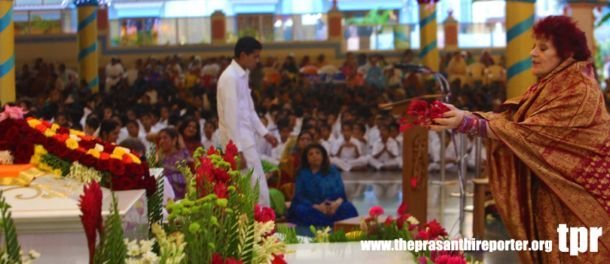 Tat Опубликовано 19 ноября, 2014 Автор Опубликовано 19 ноября, 2014 19 ноября 2014, среда, утренняя программа Празднование Женского Дня… Сегодня, 19 ноября, отмечается Женский День, чтобы выразить уважение и почтение женщинам. Это день, который Всевышняя Божественная Мать даровала мастерицам – хранительницам очагов, хранительницам страны, хранительницам мира. 19 лет назад в 1996 году Бхагаван объявил, что 19 ноября ежегодно будет отмечаться Женский День. С того времени этот день стал особым днём в календаре праздников Прашанти, а женщины всего мира отмечают этот день с большим религиозным энтузиазмом. Этот день выделяется в анналах человеческой истории, поскольку Бхагаван Шри Сатья Саи Баба Своим Божественным Провидением выбрал его, чтобы восхвалять и прославлять, почитать, выказывать уважение и поклоняться Женской Природе, и чтобы мир следовал Его примеру в этом. Представительницы изящной половины человечества, гордящиеся славой достойных подражания добродетельных женщин, таких как Сита, Сати и Савитри, собрались сегодня утром в Прашанти Нилаям, чтобы отметить этот день с большим религиозным пылом. Этим утром Прашанти Нилаям, отмечал это событие, 19-й Женский День, с большим энтузиазмом преданности, в этом праздновании приняли участие женщины-преданные из различных частей мира. Программа началась в 8:00 утра с Ведических песнопений в исполнении студенток кампуса Анантапура Шри Сатья Саи Института Высшего Образования (SSSIHL). Затем была представлена короткая музыкальная программа в исполнении духового оркестра Анантапура. Девушки исполнили два замечательных произведения для Возлюбленной Мамы Саи. Затем студентки Анантапура произнесли призывные Ведические молитвы. После этого др. К.П. Саи Лила произнесла краткую вступительную речь, представив предстоящую программу. В это утро выступили три оратора: др. Снехалатха Дешмукх, мисс Мадхури Нагананд и профессор (мисс) Мадху Капани. Поприветствовав аудиторию на языке телугу, др. Снехалатха Дешмукх, бывшая вице-канцлером университета Мумбаи, сказала о важности этого дня, указав, чем важна женская природа. Воздавая хвалу дисциплине в Прашанти Нилаям и его священной атмосфере, говоря о добродетелях на примерах из жизни, оратор призвала аудиторию быть дисциплинированными, быть мужественными. «Я приехала сюда, чтобы принять во внимание хорошие привычки и воспринять их даже в этом преклонном возрасте, потому что возраст не помеха для учения», – сказала в заключение оратор, окончив своё выступление на позитивной ноте. Следующей выступала мисс Мадхури Нагананд, член траста «Благополучие Женщин» имени Шримати Ишвараммы. Она говорила об основании Бхагаваном этого траста с целью возвышения женщин. Перечислив статистические данные достижений траста в области служения, мисс Нагананд напомнила женщинам об их материнской ответственности в воспитании детей и необходимости быть примером для подражания в их жизнях. «Не теряйте из виду Саи и Его учения, следуйте им, чтобы возвысить свои души в своём путешествии жизни», – сказала оратор в заключение. «Нет Бога выше Матери», – подчеркнула профессор Мадху Капани, директор кампуса Анантапура SSSIHL, говоря о значимости женской половины человечества. Выступая с хорошо построенной речью, наполненной практической мудростью, профессор Капани превознесла жен