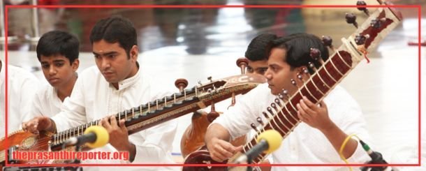 Tat Опубликовано 30 сентября, 2015 Автор Опубликовано 30 сентября, 2015 30 сентября 2015, среда Благоговение, выраженное языком музыки… Этим вечером здесь, в Прашанти Нилаям, выражая благоговение мелодичным языком индийской классической музыки, музыкальная братия музыкального колледжа Шри Сатья Саи Мирпури представила Лотосным Стопам Бхагавана волнующее душу музыкальное подношение, называвшееся «Премасварупа Саи». Это особое подношение было посвящено Учителю, Чьё неустанное вдохновение, руководство и Высшая Воля привели к открытию этого самого музыкального колледжа Шри Сатья Саи Мирпури на ‘Собственной Земле Бога’ в Прашанти Нилаям. Концерт начался в 17:00 с «Бхаджаговиндам…», произведения в Рагамалика, Ади Талам. Затем прозвучало «Саи Мурари Ванамали Гиридхари…» в Раг Пурия Дханашри, Тинтал, после которого была исполнена вдохновляющая Сатья Саи композиция «Нинну Бхаджийинтху Нирадаму Саи…» в Раг Шанкарабхаранам, Ади Талам. Затем прозвучало весёлое очаровательное инструментальное произведение в Рагамалика, Тин/Ади Тал, исполненное ансамблем музыкантов, игравших на карнатик вине, ситаре, мриданге и табла, после которого было исполнено заключительное произведение – Маратхи Абханг «Джана Виджана Зале Амха…» в Раг Чандракаунс. По окончании концерта программа вечера продолжилась бхаджанами и завершилась в 18:15 предложением Мангала арати. Самаста Лока Сукхино Бхаванту – да будут счастливы все существа во всех мирах! Источник: http://www.theprasanthireporter.org/2015/09/adoration-in-musical-language/ Видео музыкальной программы преподавателей и студентов музыкального колледжа Шри Сатья Саи Мирпури – 30 сентября 2015