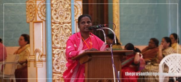 Размышляя о послании Иисуса человечеству – относиться ко всем одинаково, мисс Бурроуз рассказала о волнующем переживании женщины-преданной из Кералы, случившемся несколько десятилетий назад, поведав, как одно последнее желание этой пожилой несчастной женщины – увидеть Бхагавана в белом одеянии – было чудесным образом исполнено Бхагаваном. Она также рассказала вдохновляющую историю об образцовой школе Бхагавана в Таиланде, которая была основана по особым указаниям Бхагавана. «Пытайтесь быть как Иисус; Иисус был человеком, единственной радостью которого было нести всем Божественную Любовь…», – сказала в заключение оратор, призвав преданных стать Его посланниками.