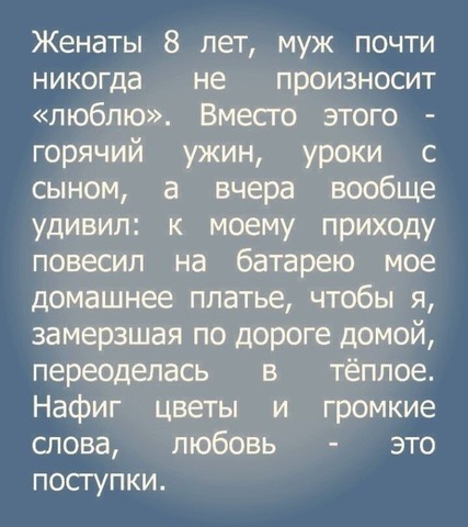 Sergey Matveev Опубликовано 19 мая, 2018 Опубликовано 19 мая, 2018 На днях ко мне подошла школьница и спросила: «Что такое любовь?» Я знаю ее семью. Мама дважды была замужем, оба раза недолго. Дочь живет одна в интернате при школе. Иногда ходит к отцу, но у него другая семья. Мама имеет несколько квартир, которые сдает в аренду, сама живет сейчас в Турции. Дочь материально обеспечена. А вот с вопросами подойти, похоже, не к кому. Только к учителям, как, например, ко мне. Скорее всего у нее случился сексуальный опыт, возможно, не самый лучший. Вот она и спрашивает: «Любовь - это только гормоны, или есть еще что-нибудь?» Я начал свой ответ с того, что слово «любовь» в нашем языке очень многозначное. Цитата - Гога, ты помидоры любишь? - Есть люблю. А так - нет! или Цитата - Вы не любите кошек?! Вы просто не умеете их готовить! Любовью в высшем смысле люди называют самое сильное чувство, которое они переживали в жизни. Это можно написать в рамку как определение. По этой причине. разные люди называют этим словом разные переживания. Потому что не всех людей бывают переживания такой глубины. И даже один человек в разные моменты жизни может называть разные чувства любовью. Как только в его жизни появляется переживание более сильное, так он сразу говорит: «Вот она, настоящая любовь! А до этого была только влюбленность…» Единственное, в чем люди сходятся, так это в том, что каждый из нас уверен, что знает, что такое любовь. Если задуматься подольше над словами: «Любовью мы называем самое сильное чувство, которое мы испытывали в жизни», то легко прийти к выводу, что я могу не знать еще, что такое любовь. Более того. Может такое случиться, что в этой жизни я не встречусь с любовью. По крайней мере я уверен, что я видел немало людей, которые не испытывали в жизни переживаний такой глубины, какую я познал. Иными словами, они не познали истинную любовь. В моем понимании истинную. Но они об этом не знают. Как я могу знать, что я познал всю глубину? Что нет ничего глубже? Вот сейчас мы с Вами пытаемся обсуждать, истина ли любовь. Но. Об одном и том же мы говорим или о разных вещах? Знает ли каждый из нас на самом деле что такое любовь? Есть еще один вопрос. Но он имеет смысл только когда на предыдущие ответ понятен. Разве любовь мужчины к женщине - это не любовь к Богу, всё это создавшему? Лично я не могу разделить эти два феномена. Любовь к женщине, которая сотворена так безупречно. И любовь к тому, кто создал такую безупречность в моей жизни. Simple Mind, ram108 и На шпильках 3