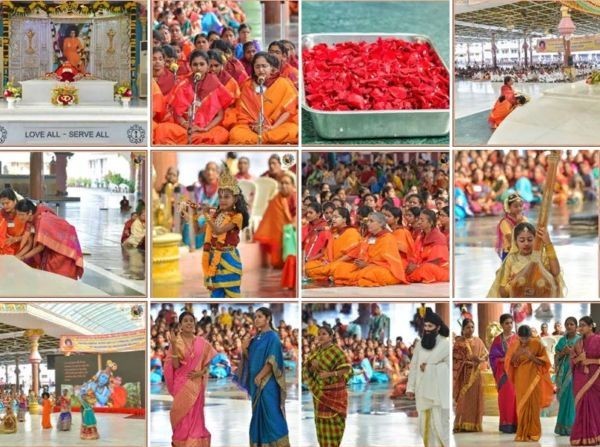 Ранее, утром, группа Балвикас в составе более 400 человек совершила впечатляющую процессию с паланкином, войдя в Святая Святых Саи Кульвант холла, представляя богатое культурное и духовное наследие Бхарата. Рецитация Вед и бхаджаны и утром, и вечером исполнялись специальными группами из района Канчипурам.