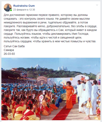 marianna Опубликовано 27 февраля, 2019 Опубликовано 27 февраля, 2019 Друзья, на днях на фб один человек привёл цитату Свами из Его выступления в Самаре (?!) да, вот именно так и подписано выступление Бхагавана от 26 марта 1965 года в английском источнике : Samara, 26-3-1965 захотелось узнать, что это за Самара такая есть в Индии? поиск через Гугл не выдал практически никаких результатов по такому поселению в Индии, попалась только пара бизнес-компаний с похожим названием, и несколько отелей, в название которых входит это слово Самара может быть, кто знает, где находится такой населённый пункт в Индии? пожалуйста, поделитесь тогда информацией, любопытно посмотреть вполне возможно, что САМАРА это название и не населённого пункта, а просто, вот, какого-то дома или отеля вообще, само по себе интересно, что это слово в каком-то значении употребляется в индийском языке =========== кстати, интересно заметить, что 26 марта 1965 года Свами выступал ещё в двух населённых пунктах (или местах) Индии : Kaakinada, 26-3-1965 и Pithaapuram, 26-3-1965 нагляднее это видно вот на этой странице с выступлениями Свами (англ.) в 1965 году Volume 05 (1965) На шпильках, мудрец, Нелли Каспийская и 1 другой 4
