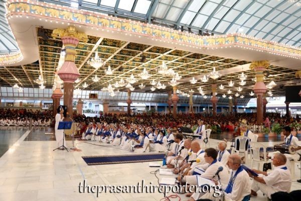 Tat Опубликовано 16 июля, 2019 Автор Опубликовано 16 июля, 2019 16 июля 2019, вторник Празднование Гуру Пурнимы в Прашанти Нилаям Утренняя программа Благоприятная Гуру Пурнима в Прашанти Нилаям…Манаса Бхаджаре…Его первое благовестие человечеству всё ещё звучит, возвещая могущественное послание освобождения, оно постоянно звучит во всех ушах Его творения. Он – СадГуру, и Его Присутствием, Его неописуемым жизнелюбием с восторгом дорожат. Сегодня день для поклонения Его Святым Лотосным Стопам, Присутствию, являющемуся сутью всего творения. Сегодня, в этот священный день Гуру Пурнимы Прашанти Нилаям ликует, отмечая этот праздник с огромным пылом преданности. Программа началась традиционным выступлением студентов Шри Сатья Саи Института Высшего Образования (SSSIHL), выступили: духовой оркестр, группа Панчавадьям и музыкальная группа, представившая Гуру Ванданам – воспевание-дань Всевышнему Учителю, воплотившемуся как Бхагаван Шри Сатья Саи. Выступавший из ораторов первым др. В Мохан говорил о важности этого дня, объясняя значение Гуру Пурнимы. Делая ударение на необходимости Единства, ведущего к Чистоте, которая ведёт к Божественности, что существенно важно для выполнения Его работы, др. Мохан сказал, что все подразделения Центрального Траста, Международной организации Сатья Саи (SSIO) и Шри Сатья Саи Сева организации (SSSSO) работают слаженно. Это Самадхи – не Самадхи (гробница)…, это живое Самадхи, и Он продолжает работать для всех нас…, и, таким образом есть необходимость возвращаться в Прашанти Нилаям, напомнил оратор. В заключение оратор попросил августейшую аудиторию дать обет поддерживать Прашанти Нилаям до последнего вздоха, возвращаясь снова и снова в Прашанти Нилаям не только для перезарядки батарей, но и по требованию долга. Все должны работать вместе до достижения конечной цели – сделать Путтапарти и Прашанти Нилаям всемирной духовной столицей, сказал др. Мохан. Говоря о двойном благословении, 2 в 1, Бога и Гуру в одной форме, выступавший следующим др. Нарендранатх Редди, президент SSIO, сказал что Бхагаван – это Сакшат ПараБрахман. Нама, Рупа и Лила (Имя, Форма и Игры) являются тройным благословением Бхагавана человечеству, сказал оратор, добавляя к милостям Даршан, Спаршан и Самбхашан (видение формы, прикосновение и общение), подробно объясняя каждый из атрибутов. Он также объяснил четыре понятия: Чаматкар, Самскар, Паропакар и Сакшаткар (чудо, мирская жизнь, служение и самореализация), напоминая аудитории о высочайшем долге перед собой, а именно, Познать Свою Собственную Истину, т.е. достичь Сакшаткара. Шри Нимиш Пандья, президент SSSSO, выступавший последним из ораторов, назвал этот день днём благодарности Гуру. Говоря с большой убеждённостью и ораторским совершенством, Шри Нимиш Пандья привёл красивый пример Гуру Дакшины (платы Гуру) Еклавьи, напоминая аудитории, что Гуру Дакшина нашему Любимому Бхагавану – это наши сердца. «Готовы ли мы к этому?» – Спросил оратор, предоставляя аудитории поразмышлять, подумать о несравненной красоте Божественного Даршана Любимого Бхагавана. Две вещи необходимо преподнести Ему – добровольное согласие заниматься Его работой и нашу преданность в сочетании с преображением. Беспрекословное подчинение Учителю – это абсолютная необходимость, напомнил Нимиш Пандья, прося аудиторию бороться с р