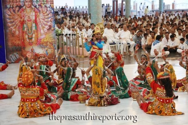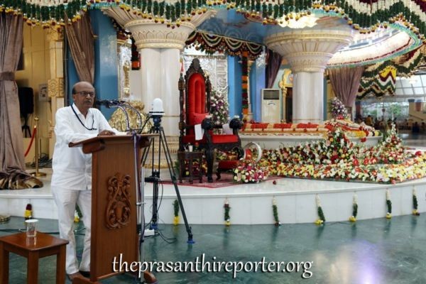 Tat Опубликовано 7 октября, 2019 Автор Опубликовано 7 октября, 2019 7 октября 2019, понедельник Прашанти Видван Махасабха, день 6 Сегодня Маха Навами, 9-й и предпоследний день 10-дневного празднования Дасары. Этим вечером программа Прашанти Видван Махасабха началась с согревающей душу рецитации ведической молитвы красивыми учениками начальной школы Бхагавана. Когда малыши, одетые в ярко-оранжевую одежду, излучая невинность, наполнили зал рецитацией Медха Суктам, умилостивляя Божественную Мать, это также явило результат Божественного решения Любимого Бхагавана, заверяющего об огромной необходимости возрождения Вед. Затем Шри Хирак Доши, докторант факультета математики и компьютерных наук кампуса Прашанти Нилаям Шри Сатья Саи Института Высшего Образования (SSSIHL), представил программу. Оратором в этот вечер был др. К.Н. Нареш, доцент факультета биологии. Сделав темой своего выступления непостижимую материнскую любовь Мамы Саи, др. Нареш в своей поэтической речи, длившейся 40 минут, увёл аудиторию в интересное и драматическое путешествие сначала в глубины Тихого океана, затем в Коста-Рику, после этого возвращаясь в свою деревню Раяласима и, наконец, в Прашанти Нилаям Свами, рассказав четыре драматические истории о бескорыстной материнской любви. Нареш, преподаватель биологического факультета SSSIHL, начал своё выступление с двух историй из жизни дикой природы, рассказав сначала историю спрута-матери, живущей в глубинах Тихого океана, затем лягушки, живущей в лесу Коста-Рики, поведав, как эти живые существа дикой природы наполнены бескорыстной любовью. Задавшись вопросом, Кто Питает и Поддерживает это огромное творение и его обитателей, оратор продолжил рассказом о его собственной семье, о том, как Материнская Любовь и Сострадание Бхагавана спасли его семью от ужасной трагедии, затем последовал рассказ о случае, произошедшем в 1997 году на Спортивной Встрече, когда Бхагаван спас жизнь на высоте сотен футов от земли. Посредством своего поэтически-драматического рассказа др. Нареш с особым выражением настойчиво утверждал, что Бхагаван – Всевышний, присутствующий повсюду, находящийся во всём, как об этом говорится в древнем духовном стихе: «Я Деви Сарвабхутешу Матру рупена Санстхита…». Затем по системе вещания было передано Божественное выступление Бхагавана. Заключительным подношением этого дня было выступление танцевальной группы Прашанти, состоящей из учащихся разных учебных заведений Саи. Это была великолепная танцевальная программа, называвшаяся «Бхагавата Шараму…». Бесконечно волнующее замечательное произведение искусства, представленное в этот канун Виджая Дасами, рассказывало историю Бхагавана Шри Кришны – Величайшего Музыканта Своего Собственного Творения. История о славе полной самоотдачи Матери Радхарани, Атма Ниведанам, показанная на фоне рассказа никого иного как Любимого Бхагавана и вечно ностальгической красоты «Патту Падумо Кришна…», усиленная Его несравненным Вечным Присутствием, была буквально душераздирающей. «Вор, крадущий сердца всех» Читта Чора – Господь Кришна действительно украл сердца многих в этот вечер. Начавшиеся вслед затем бхаджаны завершились предложением Мангала арати Бхагавану. Завтра священное Виджая Дасами, знаменующее завершение Дасара Джнана Саптаха Яджны заключительным поднош