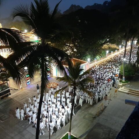 marianna Опубликовано 24 ноября, 2022 Автор Опубликовано 24 ноября, 2022 Среда, 23 ноября 2022 г. Вечерняя программа. Шествие Золотой Колесницы | Джула Махотсавам Этим вечером празднование 97-летия Бхагавана подошло к грандиозному завершению. Вечерняя праздничная программа была открыта традиционной Сварна Ратхотсавам (шествием Золотой Колесницы) нашего Возлюбленного Бхагавана, которое началось из храма Ганеши под пение Вед, бхаджанов и Мангала Вадьям (букв. мангала «благоприятный», вадья «инструмент»). В приведённом ниже ролике (в закрытом тексте) можно послушать, как звучит Мангаля Вадьям: Спойлер "В южноиндийской культуре есть духовой инструмент под названием надасварам, он считается очень благоприятным, это ключевой музыкальный инструмент, на котором играют почти на всех индуистских свадьбах и в храмах южноиндийской традиции. Это часть семейства инструментов, известных как Мангала Вадьям (букв. мангала «благоприятный», вадья «инструмент»). На этом инструменте обычно играют по двое и в сопровождении пары барабанов, называемых тавилами; он также может сопровождаться звуками подобными гобою, на инструменте имеющем название отту. " (из Википедии) ДЖУЛА МАХОТСАВАМ После торжественного завершения Шествия с Золотой Колесницей в Саи Кулвант Холле началась самая красивая Джхула Махотсавам. Концертная программа доктора Л. Субраманиам и миссис Кавита Кришнамурти погрузило присутствующих в ещё более глубокое переживание этого трогательного праздничного действа. Сначала миссис Кришнамурти исполняла популярные духовные песни, потом д-р Субраманиам играл на скрипке. И во время концерта богато украшенная Джхула Бхагавана мягко раскачивалась. Больше фотографий можно посмотреть по следующей ссылке Запись прямой трансляции вечерней сессии: ☘️ Nov 23, 2022 | Evening | Bhagawan's 97th Birthday Celebrations | Live from Prasanthi Nilayam