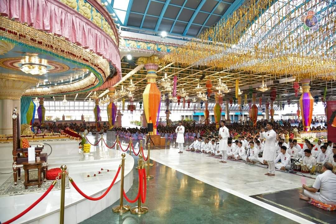 marianna Опубликовано 24 апреля, 2023 Автор Опубликовано 24 апреля, 2023 Понедельник, 24 апреля 2023 г. Утренняя сессия Саи Панчаратна Критис | Арадхана Махотсавам По священному случаю Шри Сатья Саи Арадхана Махотсавам множество музыкантов-карнатика (и других преданных) сегодня утром в Саи Кулвант Холле в Божественном Присутствии исполнили традиционное воспевание Саи Панчаратна Крити под руководством Шри Раджкумара Бхарати. Затем Шри С. С. Нагананд (член SSSCT) обратился к августейшему собранию, подчеркнув важность празднования этого дня. Больше фотографий по ссылке , а также здесь Запись прямой трансляции утренней сессии из Саи Кулвант Холла: Sri Sathya Sai Aradhana Day | Apr 24, 2023 | Morning | Prasanthi Nilayam