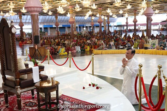 marianna Опубликовано 12 сентября, 2023 Автор Опубликовано 12 сентября, 2023 Из-за множества всевозможных событий, происходивших в Ашраме в июне, мимо нас прошло незамеченным очень интересное событие, которое я, вот, пропустила в июне, но хочу его добавить здесь сейчас. А именно, это выступление известного многим (через имя Симы Деван) семейства Деван в Саи Кулвант Холле с исполнением Шри Сатья Саи Катхи. Вторник, 27 июня 2023 г. Вечерняя сессия Шри Сатья Саи Дивья Катха - Музыкальное подношение | Зона 1 – SSSGC, США | Братья Деван Этим вечером в Саи Кулвант Холле выступили три брата Деван с исполнением на телугу поэмы Шри Сатья Саи Дивья Катхи. Шри Сатья Саи Дивья Катха - это История Славы жизни Аватара Кали-юги Шри Сатья Саи Бабы, которая была написана на языке телугу под непосредственным руководством Бхагавана ещё в 1970 гг. Его приверженцем, Шри Ади Нараяна Рао Гару, известным музыкальным руководителем индийских фильмов на телугу и тамильском языке. Как говорит Сима Деван перед началом пения этой поэмы в Саи Кулвант Холле: "Шри Сатья Саи Дивья Катха это не просто история жизни Аватара, Сам Господь воспевает Свою Славу. Его Присутствие сразу ощущается, когда эта История воспевается с глубокой преданностью. Это благо, с которым человек мгновенно получает Его Милость, когда слушает эту историю с полной концентрацией. Все проблемы исчезают, когда это повторяется коллективно, и человек получает сильную Веру, чтобы призвать Бога и припасть к Его Божественным Стопам." Немного подробнее о Шри Сатья Саи Катхе можно почитать по следующей ссылке Спойлер Больше фотографий по ссылке (Мохит Кханна) Запись прямой трансляции вечерней сессии из Саи Кулвант Холла: Sri Sathya Sai Divya Katha - Musical Offering | Zone 1 - SSSGC, USA | Dewan Brothers | June 27, 2023 marianna 1