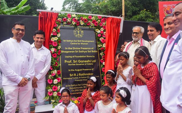 По Божественному благословению Бхагавана Шри Сатья Саи Бабы, профессор Ганеши Лал, достопочтенный губернатор штата Одиша, вместе со Шри Р. Дж. Ратнакаром (управляющим попечителем SSSCT) и другими высокопоставленными и должностными лицами заложили первый камень в фундамент Центра развития мастерства для женщин,  SSSSO Одиша.