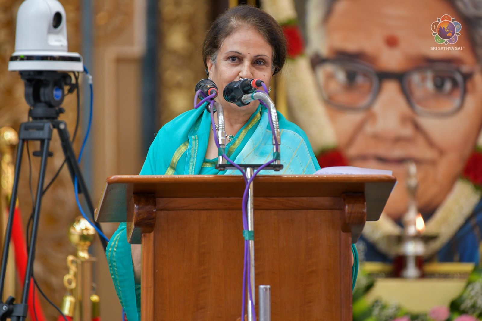 Главный гость, Шримата Шобха Карандладже (государственный министр сельского хозяйства и благосостояния фермеров правительства Индии) выразила свою благодарность Бхагавану за то, что он позволил ей приехать в Прашанти в этом году. Говоря о силе женщин и построении нации, она выразила благодарность SSSCT за достойную работу.