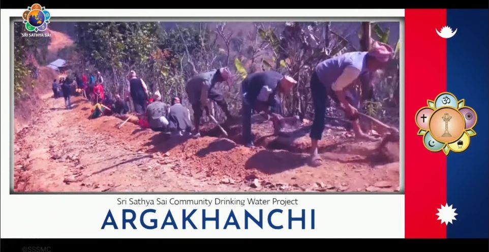 После музыкальной программы присутствующим был показан небольшой документальный фильм, посвящённый проекту обеспечения питьевой водой общины Шри Сатья Саи в Непале: