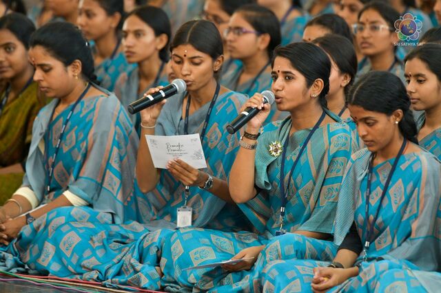 marianna Опубликовано 10 марта, 2024 Автор Опубликовано 10 марта, 2024 Воскресенье, 10 марта 2024 г. Вечерняя сессия «Тум Се Тум Так» - Программа благодарности студентов SSSIHL кампуса Мудденахалли Этим вечером студенты Института высшего образования Шри Сатья Саи кампуса Мудденахалли, закончившие обучение по программам бакалавриата и магистратуры, предложили свою программу благодарности под названием "Tum Se Tum Tak", что в переводе с хинди означает "От Тебя к Тебе": Программа включала в себя песни преданности, перемежающиеся короткими выступлениями студентов. Больше фотографий по ссылке Запись прямой трансляции вечерней сессии из Саи Кулвант Холла: Tum Se Tum Tak - Gratitude Program by Students of SSSIHL, Muddenahalli Campus | Mar 10, 2024 marianna 1