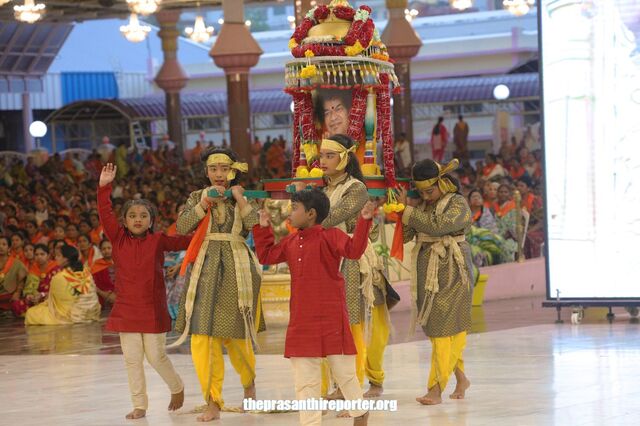 marianna Опубликовано 8 июня, 2024 Автор Опубликовано 8 июня, 2024 Суббота, 8 июня 2024 г. Вечерняя сессия "Пурнаватари Шри Сатья Саи" - танцевальное представление детей Бал Викас Анантапурама Вечерние мероприятия продолжающейся Парти Ятры преданных округа Анантапураму начались с выступления президента Шри Сатья Саи Сева Организации округа, доктора Р. Рамачандра Мурти. В своём обращении к аудитории он рассказал о различных инициативах служения, предпринимаемых ими, после чего присутствующим была представлена небольшая видеопрезентация, посвящённая служению преданных округа. Затем дети Бал Викас предложили Бхагавану и присутствующим танцевальное представление под названием "Пурнаватари Шри Сатья Саи". Спойлер Зрители с благоговением наблюдали, как дети с их чистотой и энтузиазмом воплощали в танце религиозные песни своими изящными движениями и сияющими костюмами, превращая это представление в незабываемый праздник культуры и духовности. Спойлер Больше фотографий по ссылке Запись прямой трансляции вечерней сессии из Саи Кулвант Холла: Dance Presentation by the Bal Vikas Children from Ananthapuramu District | June 8, 2024