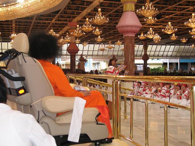 ram108 Опубликовано 17 ноября, 2005 Автор Опубликовано 17 ноября, 2005 ======================== Вчера вечером Баба вышел на даршан и очень долго сидел на веранде. Затем его подвезли к его комнатке и тут... Баба встал и пошел !!!! Через некоторое время он вернулся на веранду и стал подзывать студентов. Одному из них Баба материализовал кольцо! Выступил Анил Кумар и Баба поехал вниз принимать подарки от родителей, чьих детей (80 пар) Баба женил сегодня утром! Сегодня Баба женил 80 пар. Сначала к нему подходили невесты и Баба благословлял их, ставил тилоку кумкумом и дарил золотую цепь, мужьям дарил часы. Потом Баба ездил вдоль рядов и дарил супругам сари и дхоти. Потом брамины читали мантры и в конце Баба катался и благословлял всех супругов, обсыпая рисом! ========================
