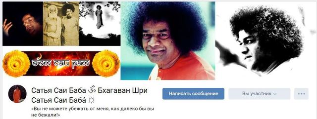 Бог в Лингаме Опубликовано 19 июня, 2012 Опубликовано 19 июня, 2012 Страницы Сатья Саи Бабы вконтакте: Главная страница Саи Бабы вконтакте: Сатья Саи Баба Самидх http://vk.com/sathya_sai_baba Сатья Саи Баба/ Sathya Sai Baba /సత్య సాయిబాబా Правила страницы: 1. Придерживаемся темы. 2. Относимся к мнению других с уважением. 3. Любим всех и пишем только с Любовью. В группе запрещено: 1.Критиковать кого либо на свете. 2. Навязывать своё мнение участникам групы. 3. Оскорблять национальные и религиозные чувства и грубо выражаться. 4.Группа не является местом для выражения своего недовольствия в какой-либо форме 5. Группа не является публикой для продвижения каких либо односторонних доктрин. .................................................... Помните - вы работаете над собой и своим характером - другие - это отражение вас же самих ............................................... Дорогие воплощения Любви! Я воплощаюсь из эпохи в эпоху для защиты праведных, для уничтожения злодеев и для установления праведности на прочной основе. Всегда когда ашанти(дисгармония) захлёстывает мир Господь воплощается в человеческой форме, чтобы указать людям способы мира и согласия и чтобы постваить человечество на путь мирного сосуществования. В настоящее время конфликты и разногласия лишили покоя семью, школу, деревню, города и государства. пришествие Господа с нетерпением ждали святые и мудрецы. Садху молили меня и я пришёл. Мои основные задачи - это защита Вед и защита преданных. Ваша добродетель, ваш самоконтроль, ваша вера и ваше постоянство - вот те знаки, по которым люди будут читать о моей славе. (23 Ноября 1968г) Сатья Саи говорит / Sathya Sai Speaks http://vk.com/sathyasaispeaks Распознать инкарнацию Бога очень трудно, и потому Я Сам во всеуслышание заявляю о Себе и говорю о Своей миссии, задаче, особенностях и качествах, которые отличают Аватара от обычных садху. (Сатья Саи Говорит том 3 Глава 3) Бал Бикас - Bal Vikas - Бала Вихара http://vk.com/balvikas Группа создана главным образом для духовных обсуждений самых хороших мультиков, нужно находить и писать те черты характера главных героев, что понравились вам и те духовные качества, что вы заметили. Ширди Саи Баба/ Shirdi Sai Baba http://vk.com/shirdisai После того, как в мир пришёл Сатья Саи Баба всем стал нужен Пурна-Аватар, но всё же думаю будет интересно посмотреть на его предыдущее воплощение ॐ Бхагаван Шри Сатья Саи Баба ॐ http://vk.com/om_sai_ram ♥ОМ САИ РАМ!♥ ॐ Добро пожаловать в семью Саи! ॐ Предлагаем объединиться и продолжать духовно развиваться все вместе, дарить друг другу любовь и радость! В этой группе мы проводим сатсанги, печатаем книги Сатья Саи Бабы и других Духовных Учителей, делимся информацией, выкладываем для вас хорошие фильмы, приятную музыку, бхаджаны и др. ॐ Саи Баджаны Мандали ॐ http://vk.com/saibhajans Шри Сатья Саи Баба. Sri Sathya Sai Baba . http://vk.com/club6102544 Добро Пожаловать! Свами говорит: Я воплощаюсь из эпохи в эпоху для защиты праведных, для уничтожения злодеев и для установления праведности на прочной основе. Всегда когда ашанти(дисгармония) захлёстывает мир Господь воплощается в человеческой форме, чтобы указать людям способы мира.. Бхагаван Шри Сатья Саи Баба, с Любовью из Нижнего Новг http://vk.com/club16218368 Есть только одна раса — раса человечества, Есть только один язык — язык сердца, Есть только одна религия — религия любви, Есть только один Бог, и Он вездесущ! Бхагаван Шри Сатья Саи Баба marianna 1