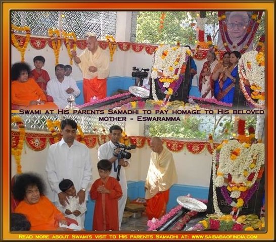 Tat Опубликовано 6 мая, 2008 Автор Опубликовано 6 мая, 2008 (изменено) 6мая 2008. вторник Сегодня священное событие – День Ишвараммы, годовщина со дня ухода Божественной Матери. Ом Саи Рам, дорогая семья Саи, наш любимый Господь через 18 лет (если я не ошибаюсь), отпраздновал день памяти Его избранной Матери Ишвараммы на своей (своего тела) родине. Улицы, ведущие к самадхи Его родителей, были красиво украшены по этому случаю. Вчера (5 мая) Свами посещал самадхи дважды. Ожидалось, что сегодня утром Он обязательно отдаст дань уважения ушедшей душе. Ишварамма – избранная, которую Свами любит всем сердцем, и как ребёнок по любому случаю освежает в памяти дорогие воспоминания и время, проведённое со Своей любимой матерью. Она является идеалом для всех матерей и образцом для подражания для всех женщин. На улицах, ведущих к самадхи родителей, была обеспечена усиленная охрана, даже несмотря на то, что даршаны Свами на улице – не новость для жителей Путтапарти, дополнительная охрана удивила всех. Улица, ведущая к самадхи (Самадхи роуд), была тщательно вычищена и красиво украшена ранголи, цветами на дороге и цветочными украшениями входа с большим изображением Матери Ишвараммы, нежно улыбающейся каждому. Войти в самадхи было разрешено только членам семьи. Самадхи родителей Свами В 8:30 утра студенты, декламирующие веды в сопровождении мальчиков, поющих бхаджаны, подошли к самадхи. В 8:55 утра группа индийских музыкантов вошла на улицу, ведущую к самадхи, за ними шли члены семьи Свами, держа в руках цветы и гирлянды, а за ними следовала машина Свами. Свами понравилось, как была украшена улица, с любовью, слегка наклонившись, Он рассматривал через стекло машины большую фотографию Матери Ишвараммы. Он благословил небольшую группу преданных (в число которых входило и это тело), которые смогли пробраться туда несмотря на охрану. Машина Свами въехала на территорию самадхи. Красный ковёр, усыпанный лепестками роз, был постелен до самадхи. Кресло Свами опустилось из машины на этот красный ковёр. Одна группа мальчиков воспевала Веды, другая группа пела бхаджаны, посвящённые Матери Ишварамме, а группа музыкантов играла божественную музыку. Атмосфера была божественной. Лично я никогда не отмечал День Ишвараммы в непосредственном присутствии Свами, я был глубоко взволнован, видя как Свами лично прибыл, чтобы отдать дань уважения Своей любимой матери. Затем Свами приблизился к самадхи, а члены семьи руководили происходящими событиями. Свами наблюдал за каждым, и это было идеальное семейное собрание, а у Свами была возможность видеть (физически) всех внучек и внуков Своих братьев и сестёр. Свами находился в счастливом расположении духа, глядя на всех них, справляясь об их благополучии и т.д. Проведя таким образом добрых полчаса, Свами попросил арати. Во время пения арати Свами медленно выехал с территории самадхи, а все члены семьи получили паданамаскар, прежде чем Он сел в свою маленькую тойоту порте. Как только Свами уехал, я поклонился самадхи Матери Ишвараммы и, получив прасад, сразу же отправился в Саи Кульвант Холл. К тому времени на часах было 9:45 утра. Котлы с пищей были доставлены в зал. Поскольку День Ишвараммы праздновался в присутствии Свами после продолжительного перерыва, Свами дал указания севадалам и другим преданным, как проводить мероприятие. Преданные 