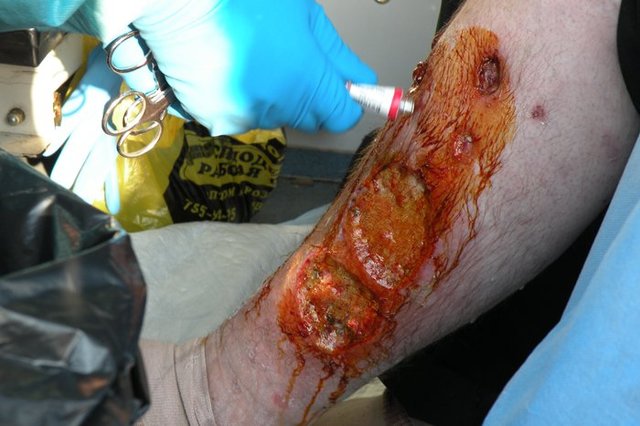 На последнего нашла кусок ваты, которой и обработали язвы на голенях.