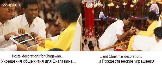 Tat Опубликовано 26 декабря, 2010 Автор Опубликовано 26 декабря, 2010 25 декабря 2010, суббота В Парти каждое событие и каждый праздник характеризуются тем, что Бхагаван является центром всего. Его Присутствие – главное, и каждый праздник обретает своё значение только тогда, когда Он присутствует на нём. После вечера накануне Рождества, когда наступило Рождественское утро, всё внимание было сосредоточено на Нём и Его присутствии. Вечером воздух был наполнен напряжённым ожиданием, и Саи Кульвант холл в богатом праздничном убранстве был готов принять Господа! Кроме официальной части Рождества, подготовленной Шри Сатья Саи Сева организацией (SSSSO), в этот вечер также было предусмотрено выступление итальянского оркестра. В Саи Кульвант холле каждый дюйм свободного места был занят преданными. В ожидании «Божественного Часа» звучали волнующие душу бхаджаны. В 18:50 Божественная колесница, Тойота Порте AP02N9000 появилась у входа, везя Господа, одетого в жёлтое одеяние. За первым кругом даршана последовал дополнительный «подарочный» круг, и взволнованные преданные пришли в восторг. Многие, кому не удалось увидеть Его привлекательный образ во время первого круга, увидели Его во время второго. Дети начальной школы поднялись на ноги, держа свои Рождественские поделки, пытаясь привлечь внимание Бога. Поднявшись на веранду по западному уклону на мужской стороне, Бхагаван, спустившись из машины, сделал круг по верхней веранде, и было видно, как Он, благословляя многих, бросал им пакетики с вибхути. Вскоре после этого Бхагаван благословил множество рождественских тортов и в 19:20 поднялся на сцену. Вечерние мероприятия начались с обращения к собравшимся председателя международного рождественского комитета Джона Бехнера. Выражая благодарность Бхагавану за Его безграничную любовь, поздравляя всех и каждого с Рождеством, Бехнер представил двух ораторов этого вечера. Ими были Кристен Прузан, журналистка из Дании, и Касс Смит, музыкант и духовный целитель из США. Миссис Прузан в своей изящной манере делилась своими личными переживаниями «Божественного Притяжения», которое привело её в Парти в первый раз. Подробно остановившись на вездесущности, продемонстрированной Свами в её доме в Дании, она рассказала о чудесном переживании, когда её муж, профессор Прузан, возвращавшийся из Парти в 1990, был спасён Бхагаваном от взятия в заложники после вторжения Ирака в Кувейт. Касс Смит говорил о Его Любви, цитируя известную книгу Сэмюеля Сэндвайса «Святой и Психиатр». Будучи музыкантом, Смит исполнил на гитаре три музыкальных произведения, закончив популярной песней «Я продолжаю чувствовать твою любовь…». Он также рассказал о чудесном переживании, произошедшем в Бриндаване, как Бхагаван чудесным образом исцелил его от «проблемы с ушами». Темой концерта группы итальянцев было «Рождество в Саи Любви». Солировали Соня Вентури, Серджио Вигагни, Эвидже Фонтана, Даллиа Гутман, Бруно Пратико и т.д. Когда они после получения Божественных благословений начали своё выступление, Саи Кульвант холл наполнился музыкой бхаджанов, исполняемых в западном стиле. Начав с трёх омкаров, приветствия Господу Ганеше и Твамева Мата, Соня Вентури к изумлению Бхагавана и огромной аудитории исполнила искрящийся бхаджан «Мукунда Мурари» в западной обработке. Аудитория аплодировала пос