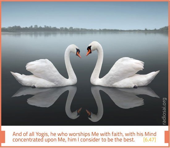 Tat Опубликовано 6 ноября, 2013 Опубликовано 6 ноября, 2013 РАЗМЫШЛЕНИЯ О ГИТЕ 06 Профессор Г. Венкатараман Глава 6 Гиты Контроль ума и чувств Перед тем как начать, я смиренно склоняюсь перед Свами и выражаю Ему свою благодарность за то, что Он руководил мной до сих пор. Я прошу Его милости и благословений в рассмотрении трудной темы, которую я собираюсь разобрать сегодня. Мы думаем о Прашанти Нилаям как об ашраме в посёлке, называемом Путтапарти. В чисто географическом смысле, это, возможно, верно. Но Свами хочет, чтобы наше сердце и наш ум были обителью Покоя или Шанти, чтобы весь мир превратился в Прашанти Нилаям. Именно для того, чтобы преобразить мир подобным образом, Он пришёл в человеческой форме, и именно в этом контексте Он всё время учит нас Мама Дхарме, которой Он учил ранее как Господь Кришна. Итак, мы продолжаем наше исследование аспектов Мама Дхармы Гиты, бегло рассматривая в этот раз главу 6. Прежде чем начать, позвольте мне напомнить вам кратко то, что мы уже рассмотрели ранее: Ранее в сериях размышления о Гите были рассмотрены вопросы: Я начал с того, что привлёк ваше внимание к тому, что приверженность Мама Дхарме – это важное благовестие Гиты. Затем я перешёл ко второй и другим главам Гиты и, рассматривая их, я указал на следующие факты: a) Жизнь – это последовательность действий. Действия всегда нужно выполнять, учитывая Мама Дхарму. c) По этому вопросу нам нужно советоваться с Сердцем, которое посылает нам сообщения через канал, называемый Буддхи. d) Канал, называемый Буддхи, может быстро засориться, если уму будет позволено наполняться нежелательными мыслями. Поэтому, чтобы сохранять Буддхи в хорошем состоянии, нужно контролировать чувства и ум. e) Не нужно уходить в лес и становиться отшельником, чтобы делать всё это. На самом деле Кришна хочет, чтобы мы находились именно в той ситуации, в которую нас поместила Судьба, и действовали при этом в рамках Мама Дхармы. Наряду с этим я также привлекал ваше внимание к важности контроля ума и чувств. Глава 6 – Дхьяна Йога Обратимся теперь к главе 6, которая называется «Дхьяна Йога», т.е. «Путь к Богу с помощью медитации». Вот три вопроса, возникающие в связи с этим: 1) Что именно подразумевается под Медитацией? 2) Зачем медитировать? 3) Какие характеристики имеет человек, медитирующий интенсивно? Эти вопросы важны и требуют некоторого исследования. Фраза Дхьяна Йога содержит два слова: Йога и Дхьяна. Йогу часто путают с физическими упражнениями, называемыми Йогасаны (позиции йоги), а Дхьяна иногда низводится до упражнения на расслабление для снятия напряжения. Да, формальная дисциплина Дхьяна Йоги действительно требует практики Йогасан и ментальной релаксации; но это только пусковые механизмы. Настоящая цель Дхьяна Йоги другая. Именно из-за того, что настоящей цели уделяется недостаточно внимания, некоторые умело торгуют Медитацией и Йогой. В действительности, в наше время Медитация почти превратилась в индустрию и моду, особенно там, где вовлечён корпоративный сектор. Как я постоянно подчёркиваю, Гита посвящена приверженности Мама Дхарме. А для этого главными предпосылками является контроль ума и чувств. 6-я глава, которую мы рассматриваем сегодня, посвящена контролю ума и чувств. И в связи с этой темой возникает много вопросов, таких как: Что такое ум, о котором мы говорим? Какое отношение